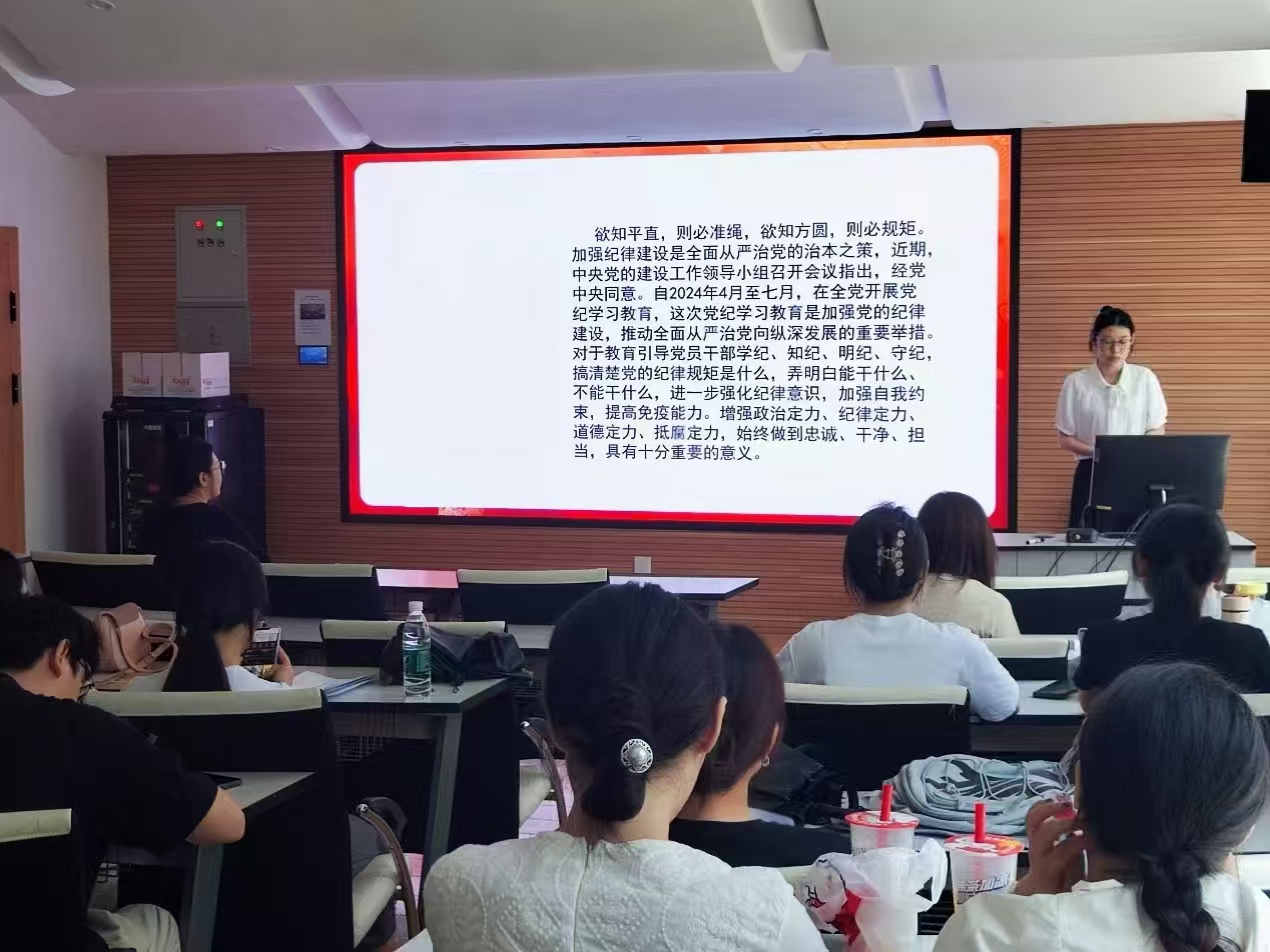 为促进支部高标准、高质量的开展党纪学习教育,秦佳悦同志带领支部全体党员共同学习了习近平总书记在二十届中央纪委三次全会上的讲话精神、习总书记在审阅中央政治局委员、书记处书记,全国人大常委会、国务院、全国政协党组成员,最高人民法院、最高人民检察院党组书记的述职报告时提出的重要要求、习总书记在2024年春季学期中央党校(国家行政学院)中青年干部培训班开班之际作出的重要指示精神等,带领支部党员深刻领会了习近平总书记围绕“全面从严治党”发表的重要讲话和重要指示精神,切实推动了支部党纪学习教育走深走实、见行见效。
