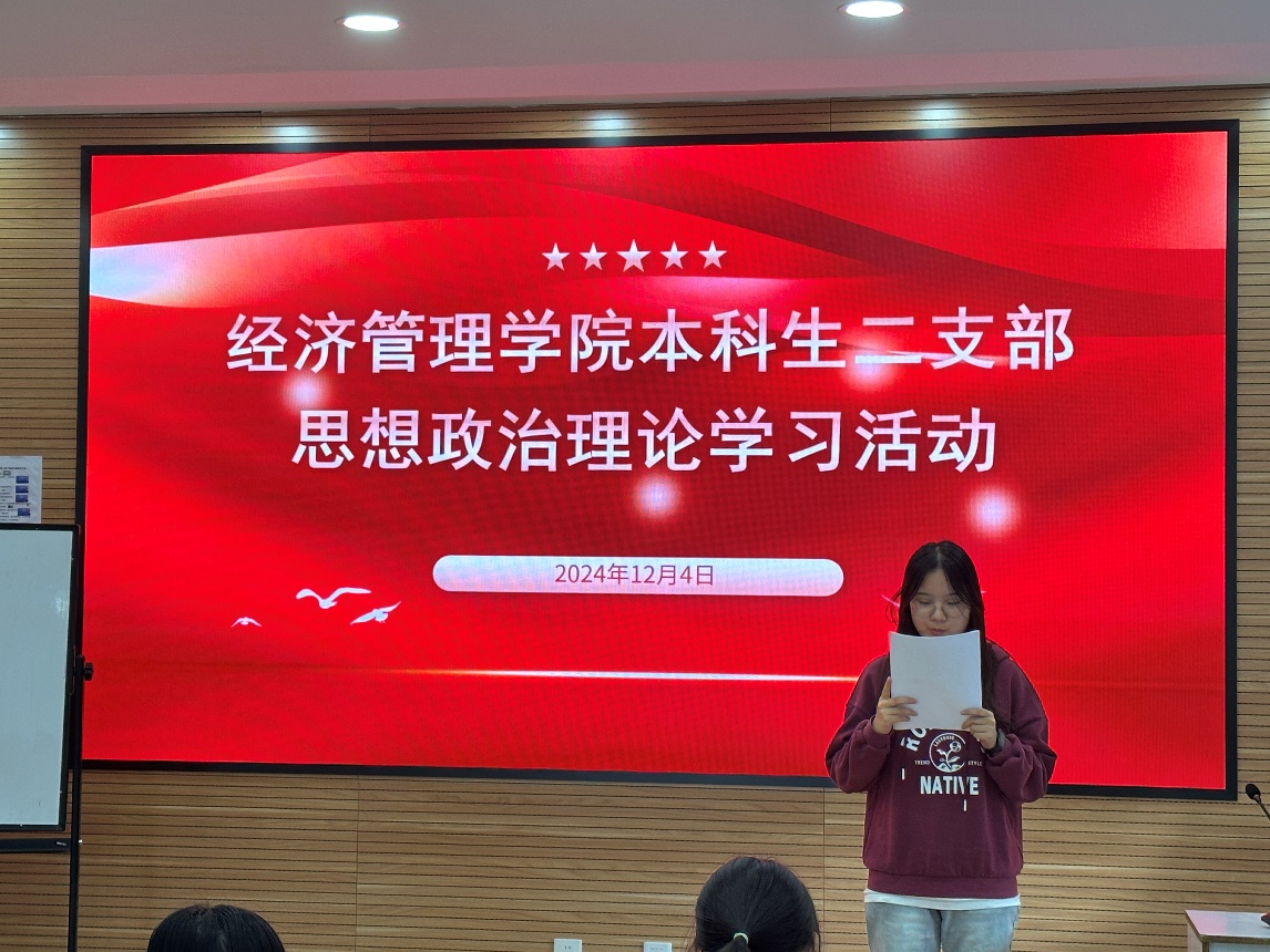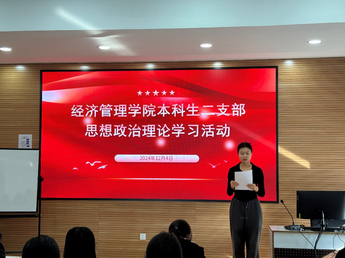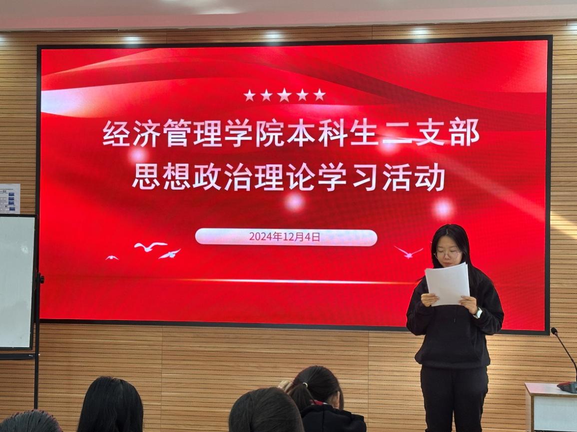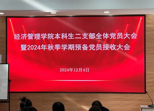 2024年12月4日下午,永利集团304官网本科生二支部在知行楼(经管楼)309教室开展了12月思想政治理论学习会议暨2024年秋季学期预备党员接收大会,支部全体党员参加了会议。