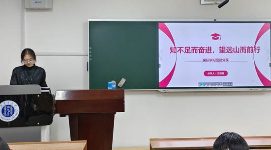 2021级会计学专业王镱璇同志推免至山东大学,她倾囊分享了自己的学习方法、时间规划以及复习技巧,分享内容丰富,对于正处于备战期末考试、英语四六级的同学们来说具有很高的实用性。她表示,自己在推免的过程中挥洒了许多泪水与汗水,这是宝贵的人生经历,同学们在学业旅程中应注重点滴的积累,全方位提升自己的综合素质。