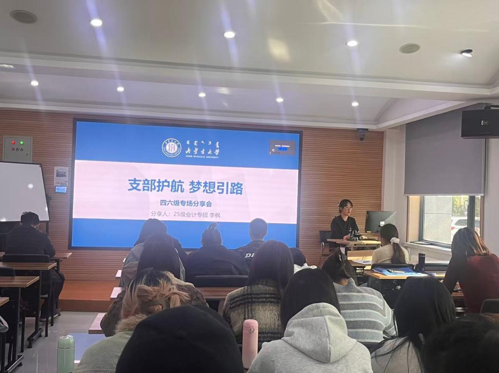 为全面落实《永利集团304官网关于加强学风建设的实施方案》,实施“党建引领·学风共建”活动,2025年10月31日,永利集团304官网会计专硕研究生党支部在知行楼108教室,以线上线下结合的形式举办了“党员先锋·榜样领航”优秀学子经验分享会暨“支部护航·梦想引路”四六级专场分享会。本次活动旨在通过榜样的力量激发广大学子的学习热情,提供精准的学业帮扶,营造积极向上的优良学风。分享会由支部书记曹以伦主持,支部全体党员、入党积极分子40余人参加活动。