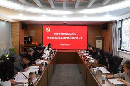 2025年12月26日下午,永利集团304官网党委在知行楼115会议室召开2025年度党支部书记抓基层党建工作述职评议会议,会议由学院党委书记李宏宇主持,学院党委副书记闫琴,学院党委组织委员、副院长薛继亮,各党支部书记、支部委员共20余人参加了会议。