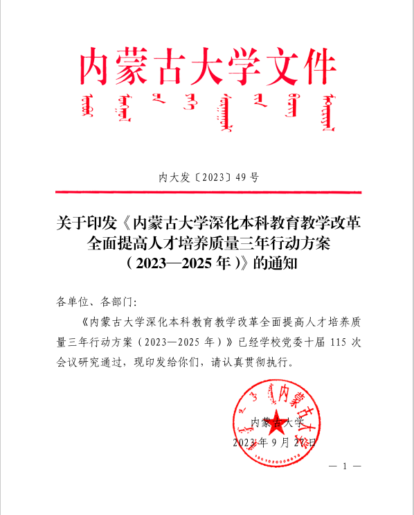 关于印发《永利集团304官网深化本科教育教学改革全面提高人才培养质量三年行动方案(2023—2025年)》的通知