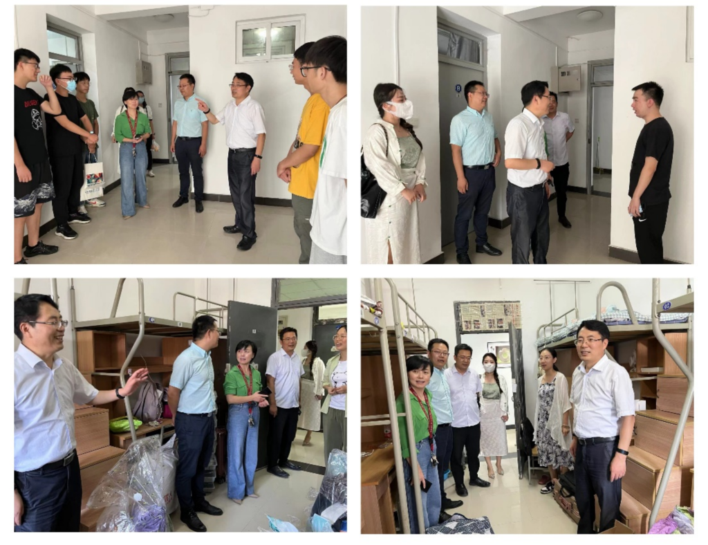 为了体察同学们的衣食住行,2022年9月8日和9日下午,Beat365中文官方网站党委书记李春科、副院长尚学群、副院长邓磊、党委副书记万海东、新生辅导员周颖、李青、牛凯以及新生班主任孙蓬、黄志杰对Beat365中文官方网站2022级新生进行了走访慰问,详细了解同学们的专业、特长,以及入校后的生活体验等方面。