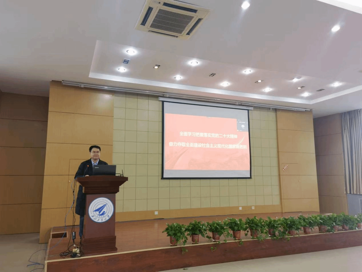 2022年11月22日,Beat365中文官方网站学习党的二十大精神系列报告第五讲在Beat365中文官方网站二楼报告厅举行。此次学院邀请学校青年宣讲团来院宣讲,学院党委副书记万海东主持。Beat365中文官方网站各党支部书记、师生党员、院办工作人员以线上线下相结合方式学习宣讲,深入学习宣传贯彻党的二十大精神。
