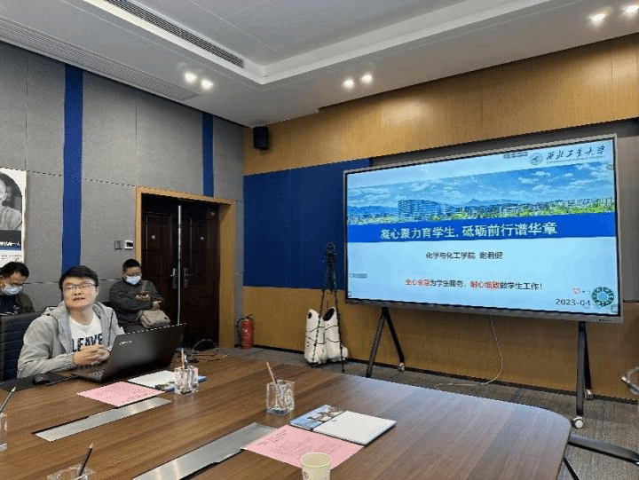 随后,来自化学与化工学院的辅导员谢君健进行题为《凝心聚力育学生,砥砺前行谱华章》的交流汇报,重点介绍了开展创新创业工作的特色举措以及年级重点工作“网格化”的工作方法,并阐释了全心全意为学生服务,耐心细致做好学生工作的重要意义。