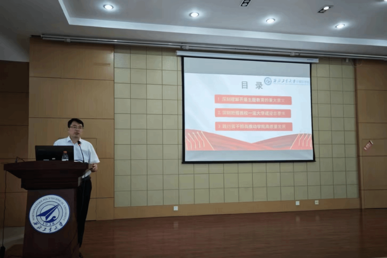 李春科从深刻理解开展主题教育的重大意义、深刻把握我校一流大学建设总要求、践行实干担当推动学院高质量发展三个方面展开论述。一是通过深入阐述开展主题教育的时代背景、重大意义和总要求,习近平新时代中国特色社会主义思想的科学体系、丰富内涵和精髓要义,学院在推动学院主题教育走深走实方面的具体行动等,带领师生在学思践悟中站稳政治立场、坚定政治方向,鼓励师生争做“四有”好老师和有理想、有本领、有担当的新时代青年。二是围绕习近平总书记“要把高等教育作为建设教育强国的龙头”的要求,传达最近学校党委书记李言荣主题教育专题党课精神,深刻把握学校“双一流”建设和高质量内涵式发展的总要求。三是立足于学院实际,通过对标国内外一流高校,分析学院在发展中存在的问题与差距,坚持问题导向、目标导向,梳理下一步的发展思路和重要举措,以建设一流学院、一流学科为目标,奋力谱写Beat365中文官方网站建设新篇章。