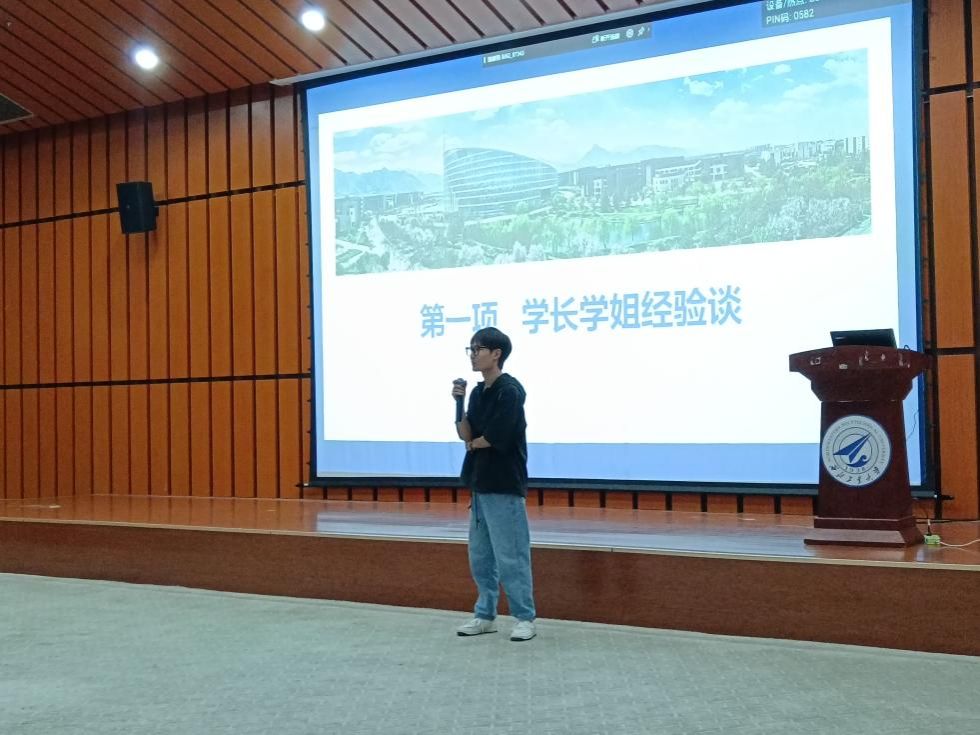 会议由靳宇琪主持。会议伊始,由学院两位优秀学生代表习嘉琪、刘磊分别分享本科和硕士期间的学习经验及个人成长心得体会。两位学长学姐分别从课程学习、社会实践、志愿活动、团学工作、学术科研、科技竞赛、就业深造等多个维度为新生讲述大学生涯的经验之道,并勉励新生们即刻出发、步履不停、向阳奔跑、逐梦而行。学长学姐的肺腑之言和倾囊相授获得了在场新生的阵阵掌声。2023级硕士新生金轲表示,学长学姐热情的传道解惑令我受益匪浅,未来将努力向两位优秀榜样看齐,奋发笃行,用拼搏书写青春足迹,用奋斗谱就青春华章。