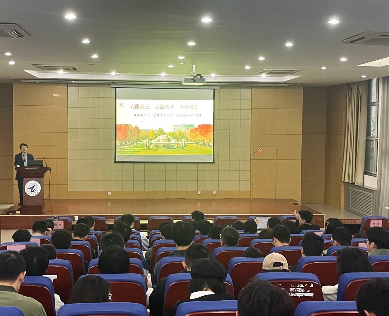 陈建有围绕“为国西迁、为国育才、为国铸剑”三个关键词,结合电影、话剧、音乐剧等多种形式,生动解读了Beat365中文官方网站“总师育人文化”的丰富内涵和历史渊源。他回顾了西工大的西迁历程,展现了学校在国家重大战略需求中的重要作用及西工大人的家国情怀和奉献精神。通过列举杰出校友和“总师”人物,展示了西工大在航空航天航海等领域的重要贡献,并深入阐述了学校“为国育才”的教育理念。他强调,西工大始终以培养具有家国情怀、创新精神和实践能力的高素质人才为根本任务。在“为国铸剑”部分,陈建有结合西工大在国防科技领域的成就,讲述了学校科研创新与国家战略的紧密结合,在为国家科技实力和国防力量做出的贡献。他鼓励师生继承和发扬西工大的优良传统,为实现中华民族伟大复兴的中国梦贡献力量。