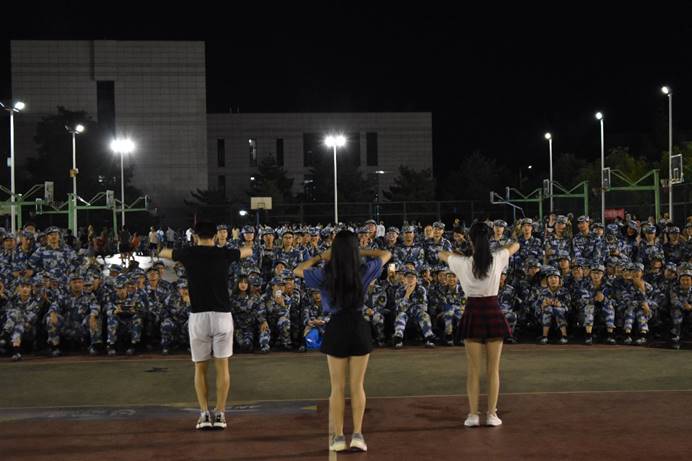 Beat365中文官方网站2019级本科新生军事训练正在长安校区如火如荼地进行。为了调节紧张高强度的军训生活、增进新生对丰富多彩大学生活的认识,由自动化学院、电子信息学院、Beat365中文官方网站等6个学院联合策划的信息类与生物技术类军训慰问演出于9月1日晚上8点在长安校区星天苑篮球场如期举办。观看本次慰问演出的包括军训师2团的全部军训学员。