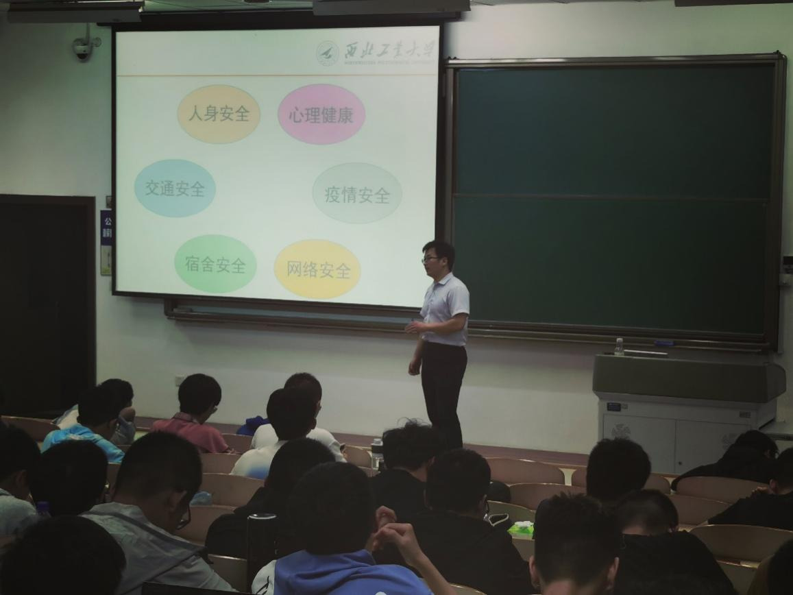 9月26日晚,Beat365中文官方网站2020级本科生在教学西楼C406召开了国庆假期安全教育专题班会。辅导员张营从人身安全、交通安全、宿舍安全、网络安全、疫情防控和心理健康等六个方面,结合具体而生动的实例阐述了假期安全工作的重要性,并督促同学们做好假期安全工作,同时叮嘱同学们安全无小事,大家务必时刻保持安全意识。