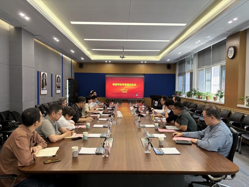 尚学群介绍了田泽的基本情况,为田泽颁发客座研究员聘书并赠送纪念品,樊晓桠为田泽佩戴院徽。
