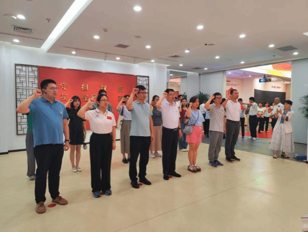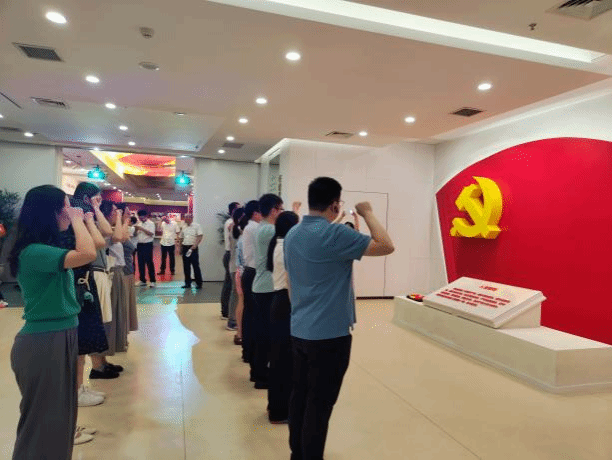 参观结束后,党委书记李春科带领大家,右手举拳过肩,面对鲜红的党旗,重温入党誓词、重忆入党初心。