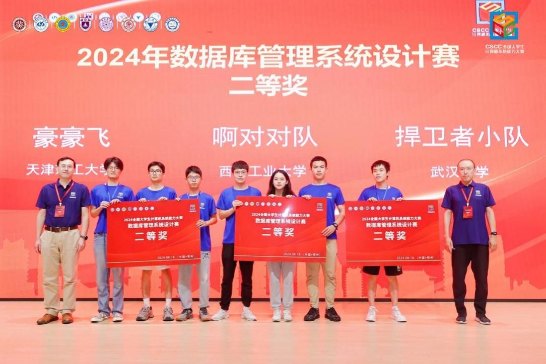 本次数据库管理系统设计赛历时2个多月,各个参赛队需要围绕数据库管理系统的内核完成10道功能题和1道性能优化赛题,赛程长,难度大。比赛过程中,各个参赛队成员紧密合作,充分发挥各自的技术特长,在学院数据库团队多位老师的指导下不断优化代码、调整算法,克服了一个又一个技术难题,最终脱颖而出,完成了一个可以运行TPC-C基准测试的小型数据库管理系统。其中,由沈阳、丁榕、张凯伦三位同学组成的“啊对对队”,以及由甘仰发、曾庆礼、王旭升三位同学组成的“对什么队”同时荣获二等奖,由白博昊、郑泽锴、杨黎健同学组成的“NPU-DBGo”队伍荣获三等奖。