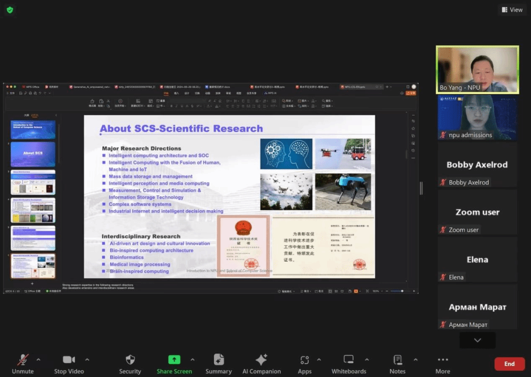 8月下旬,随着招生复试工作的正式开启,学院副院长郭斌教授、院长助理崔禾磊教授带队远赴哈萨克斯坦阿拉木图,开展了一场意义非凡的线下面试选拔之旅。此次面试不仅旨在评估学生的英语水平、基础知识和专业能力,更着重考察他们的创新能力与科研热情,力求选拔出既符合西工大学术氛围又能为学院注入新活力的优秀学子。同时,在确保招生质量的前提下,积极扩大招生规模,为学院的发展注入新的动力,为中哈友好事业培养更多优秀人才。