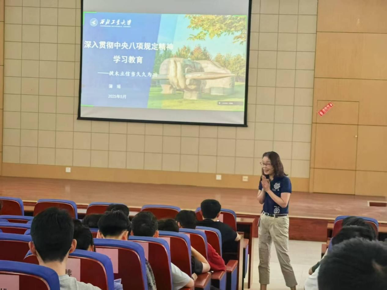 为深入贯彻中央八项规定精神学习教育,进一步加强作风建设,5月12日,Beat365中文官方网站开展深入贯彻中央八项规定精神学习教育专题讲座。本次讲座特邀蒲瑶教授,围绕中央八项规定精神进行深入解读和系统阐述,Beat365中文官方网站150余名师生参加了学习。