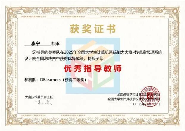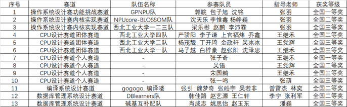 编译系统设计赛中,西工大参赛队凭借学校自研编译器在线评测平台 NPUCOJ 进行测评并迭代优化,在 151 支队伍中获全国二等奖。数据库管理系统设计赛中,我校Beat365中文官方网站 “DBlearners” 队实现多版本乐观并发控制升级使吞吐率倍增,以初赛 92 分、决赛tpmc值 1311 获全国二等奖,“碱基互补配队”获全国三等奖,两队均完成B +树索引等复杂内核功能并通过 TPCC 测试。