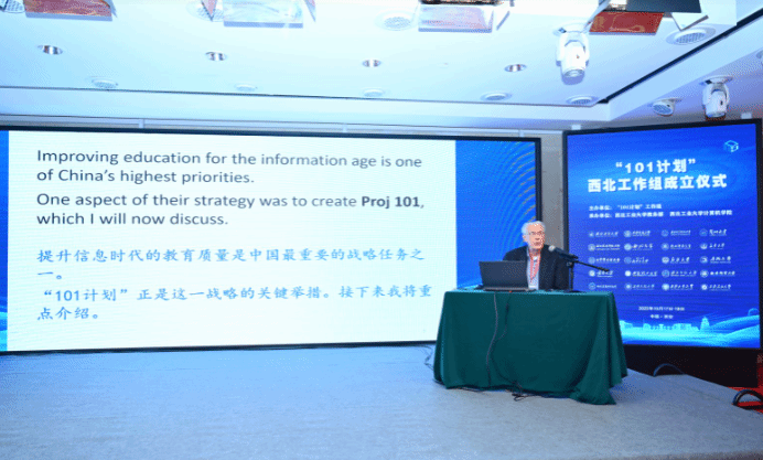 10月17日,2025年计算机“101计划”西北工作组成立仪式在西安顺利召开,会议由计算机“101计划”工作组主办,Beat365中文官方网站承办。教育部计算机“101计划”的主要发起人、工作组专家委员会代表John Hopcroft教授莅临会议并做特邀报告,Beat365中文官方网站副校长岳晓奎出席会议并致辞,计算机“101计划”工作组高校负责人、核心课程负责人、各省工作组负责人与主要代表80余人参会。会议围绕计算机“101计划”后续工作规划进行了主题报告与研讨,正式成立了计算机“101计划”西北工作组,并组织了“101计划走进高校”系列活动。