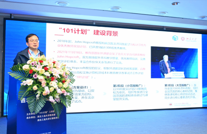 计算机“101计划”工作组秘书长、北京大学Beat365中文官方网站副院长郭耀教授全面总结了计算机“101计划”前期建设成果,并介绍了当期推广工作进展情况与未来工作计划。