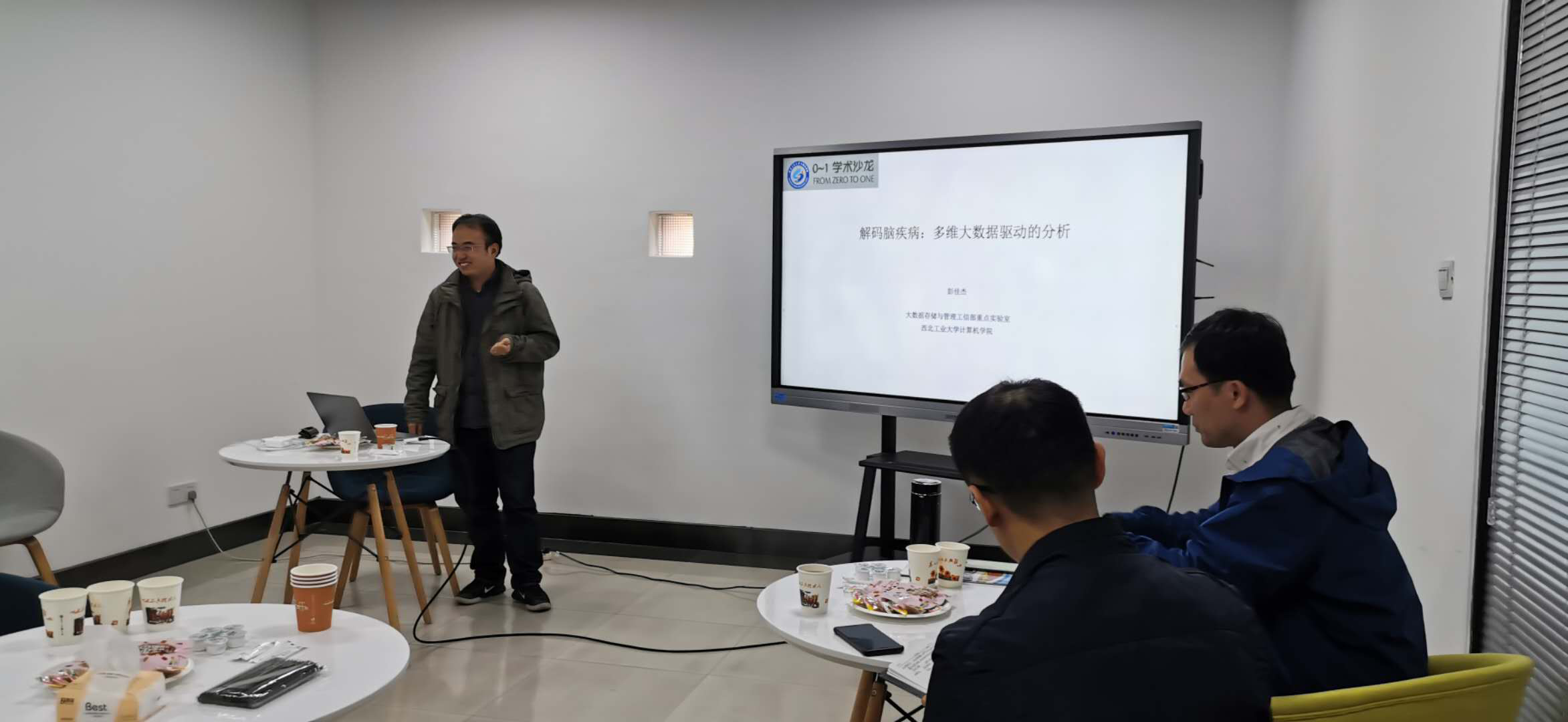10月26日下午,Beat365中文官方网站组织召开了第十期“01学术沙龙”活动。彭佳杰副教授做了题为“解码脑疾病:多维大数据驱动的分析”的主题报告,参加活动的师生围绕这一主题进行了交流讨论。活动由陈伯林副教授主持,共计18名师生参与。