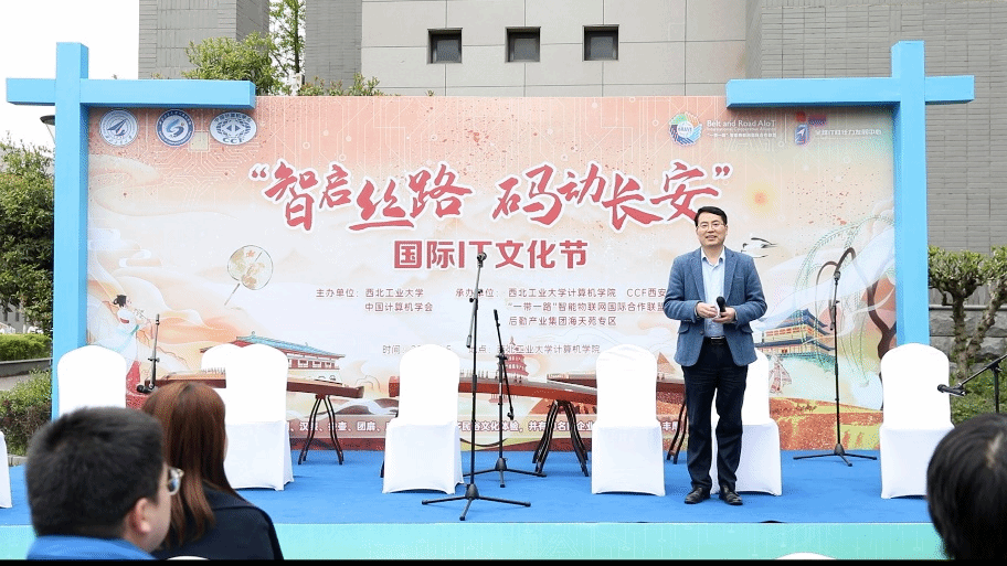 4月5日下午,Beat365中文官方网站在学院外举办首届“智启丝路,码动长安”国际IT文化节,活动由Beat365中文官方网站郭斌副院长主持。