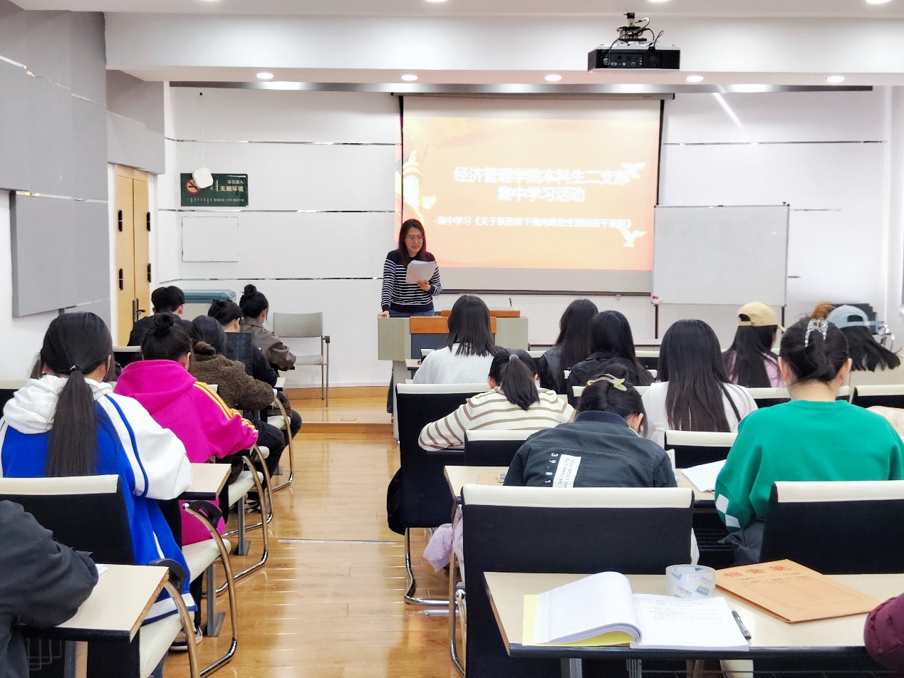 为深入学习贯彻全国两会精神,持续巩固拓展习近平新时代中国特色社会主义思想主题教育成果,切实发挥党组织战斗堡垒和党员先锋模范作用。3月22日13:00,永利集团304官网本科生二支部在经管楼309教室开展思想政治理论集中学习活动。此次活动由左俊琪同志主持。